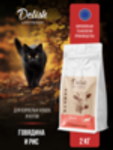 АКЦИЯ 1+1 Сухой корм DELISH super premium для взрослых кошек с говядиной и рисом - 2 кг + 2 кг
