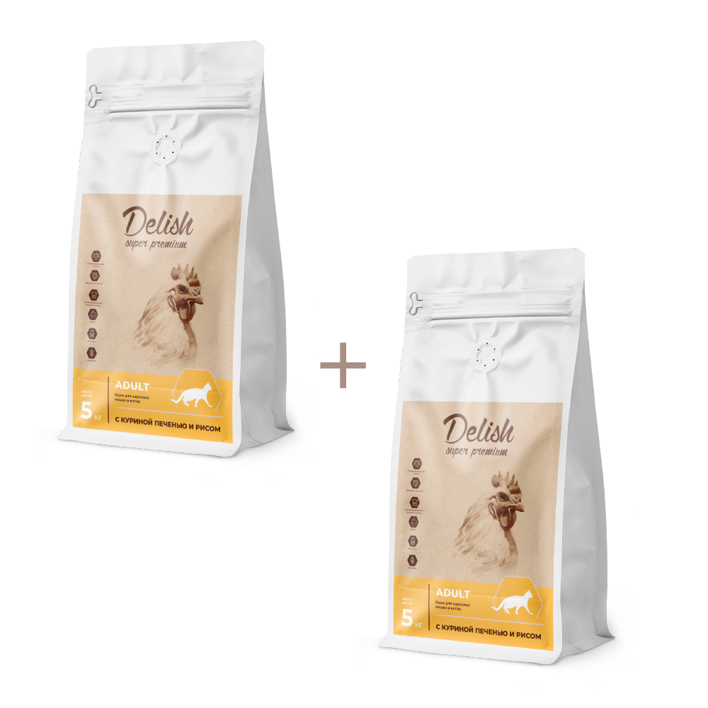 Сухой полнорационный корм с куриной печенью и рисом для взрослых кошек.