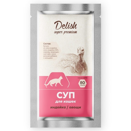 Консервы DELISH Super Premium для кошек (суп) с индейкой и овощами - 80 гр