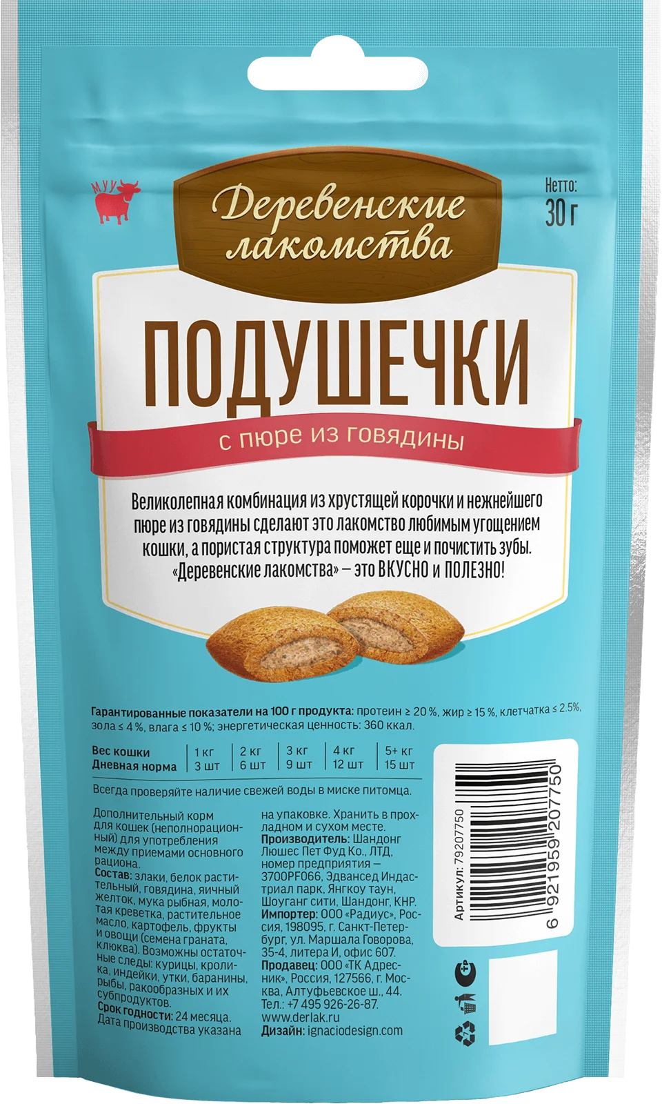 Великолепная комбинация из хрустящей корочки и нежнейшего натурального пюре из говядины делают это лакомство любимым угощением кошки, а пористая структура помогает питомцу чистить зубы.
