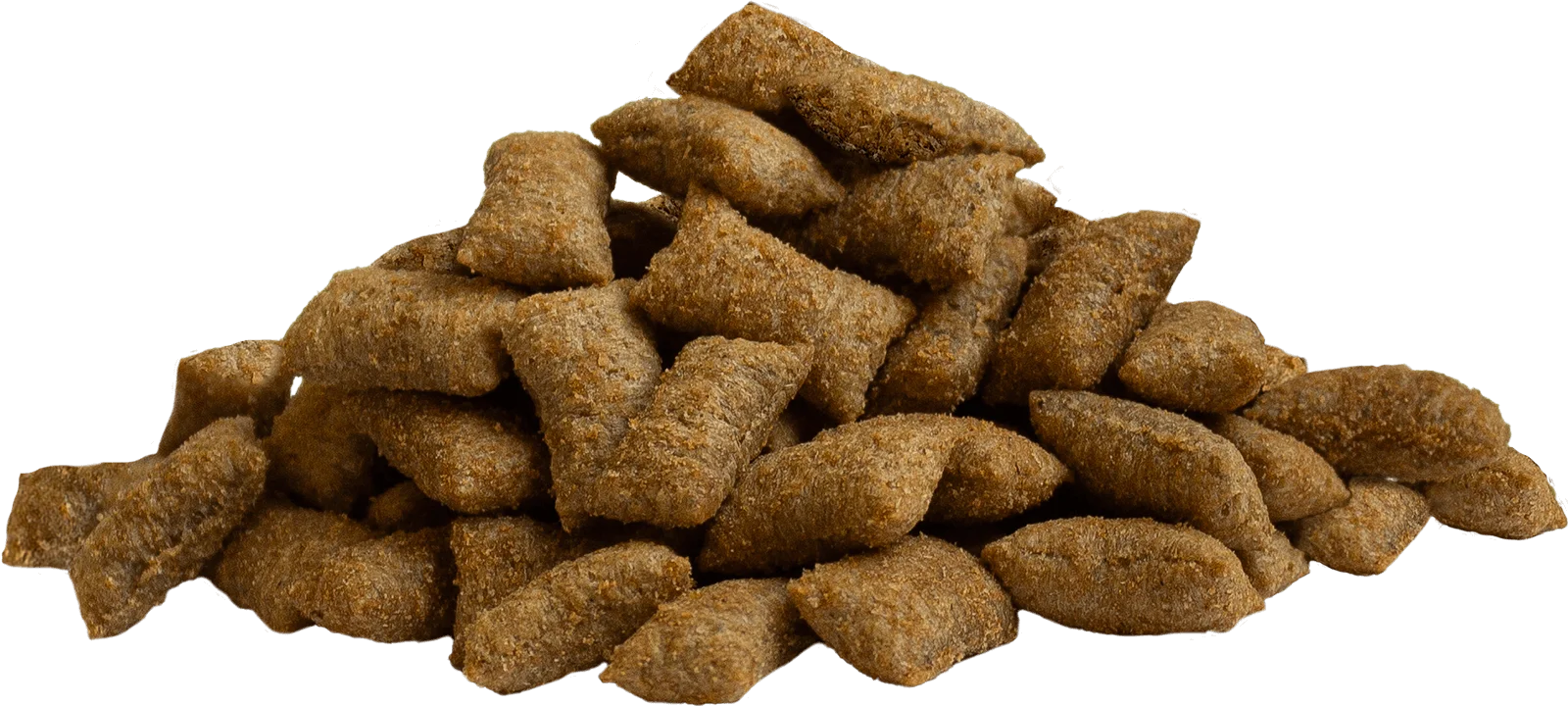 Злаки, белок растительный, говядина, яичный желток, мука рыбная, молотая креветка, растительное масло, картофель, фрукты и овощи (семена граната, клюква).