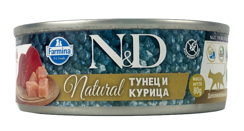 Консервы FARMINA N&D Natural для взрослых кошек, тунец и курица, 80 гр