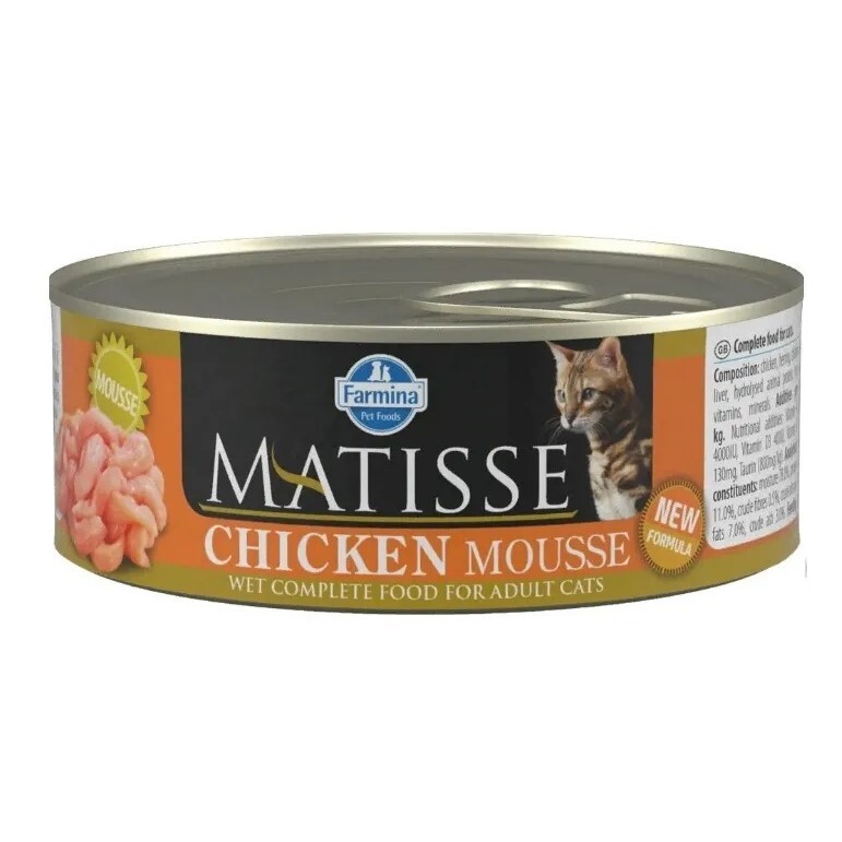Полнорационный влажный корм для взрослых кошек с курицей.