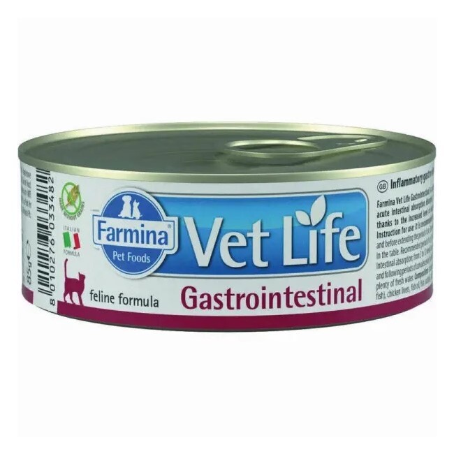 Farmina Vet Life Gastrointestinal - полнорационный диетический влажный корм для кошек при нарушении пищеварения и всасывания в кишечнике (мальабсорбция/ мальдигестия).