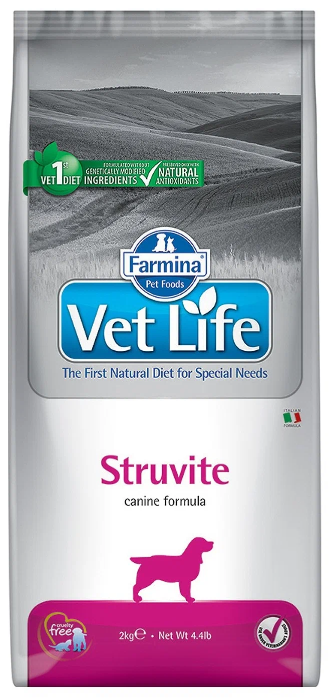 Farmina Vet Life Struvite - Диетическое питание для собак при мочекаменной болезни для подавления образования и растворения струвитных уролитов.
