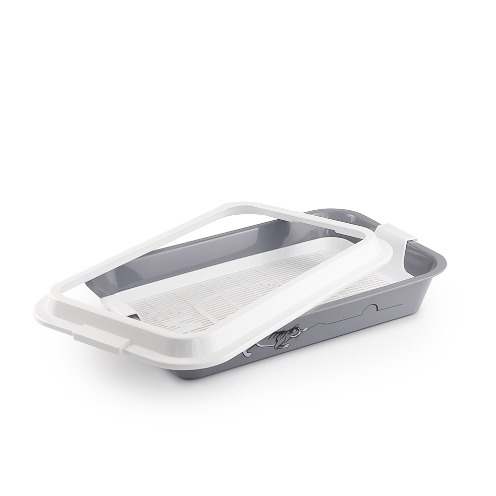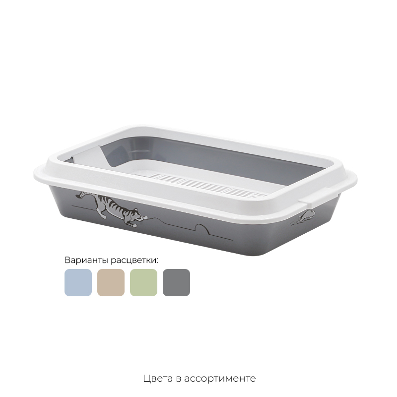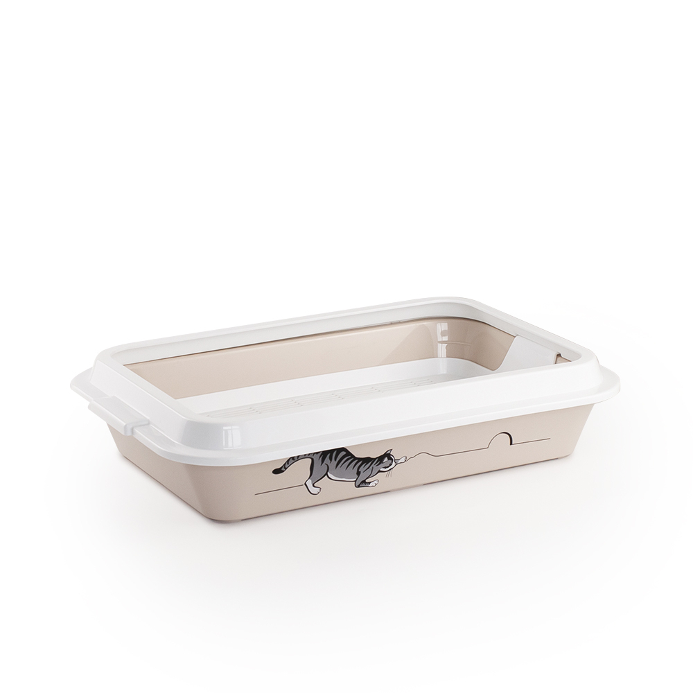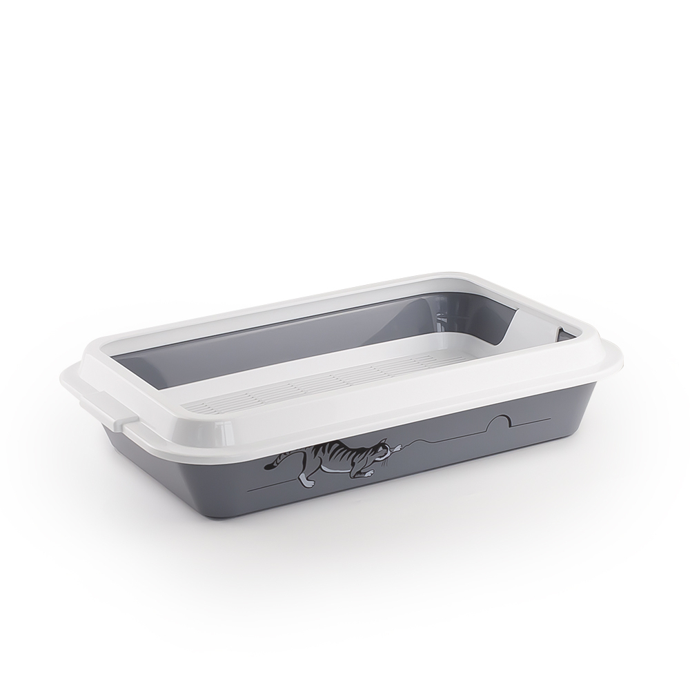 Туалет для кошек с высоким бортиком, предотвращающим рассыпание наполнителя.