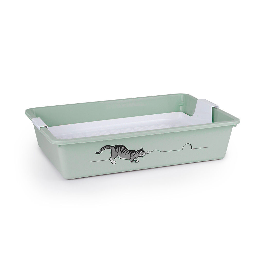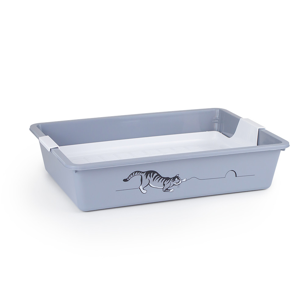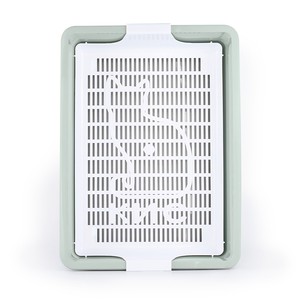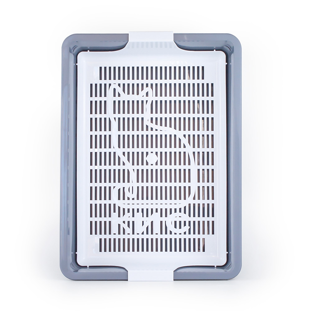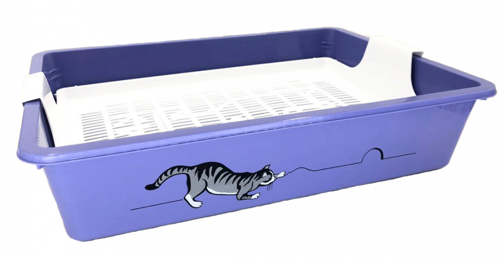 - Лоток с сеткой помогает питомцу не раскидывать наполнитель вокруг туалета, так как наполнитель находится внутри, под решеткой.