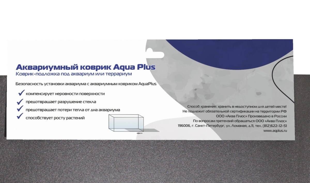 Коврик-подложка AquaPius для безопасной установки аквариума или террариума. Компенсирует неровности поверхности, защищает стекло от повреждений; предотвращает потери тепла.
