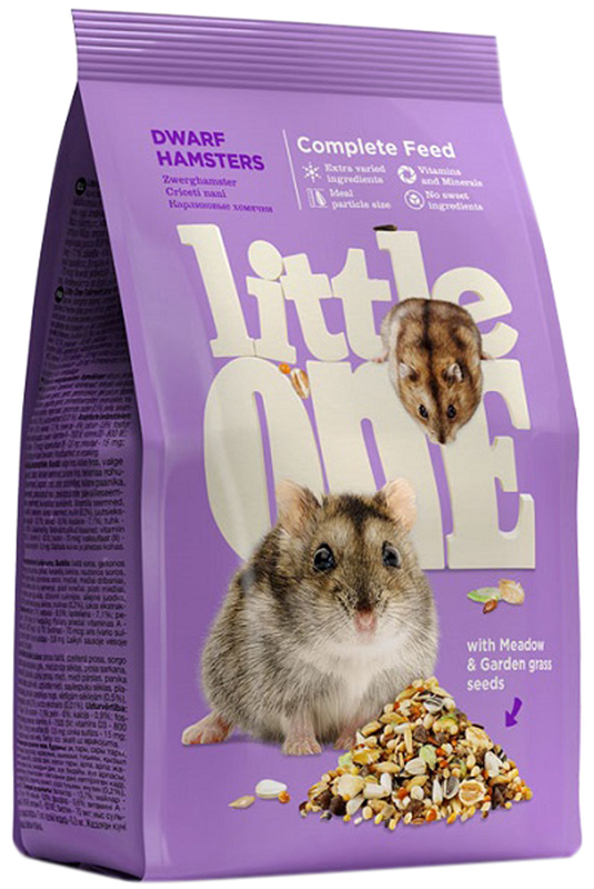 Little One Корм для карликовых хомячков - это полнорационный корм со сбалансированной рецептурой, разработанный с учетом индивидуальных пищевых потребностей карликовых хомячков и рекомендаций заводчиков.