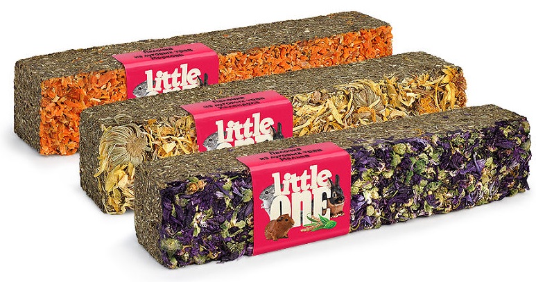 Лакомство-игрушка для всех видов грызунов и кроликов. Палочка приготовлена из ароматных луговых трав и покрыта одним из трех вкуснейших топпингов: цветки календулы, морковь или цветки мальвы.