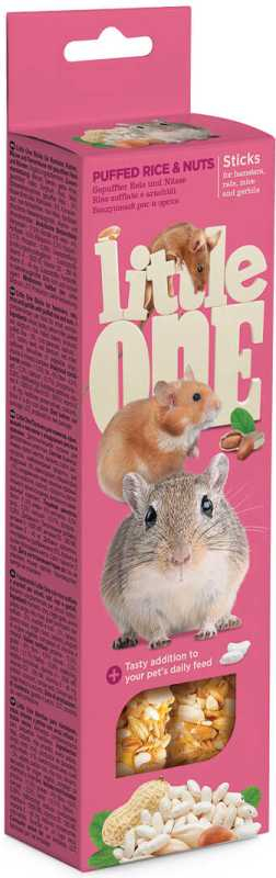 Little One - Палочки для хомяков, крыс, мышей и песчанок с воздушным рисом и орехами, 2*55 г.