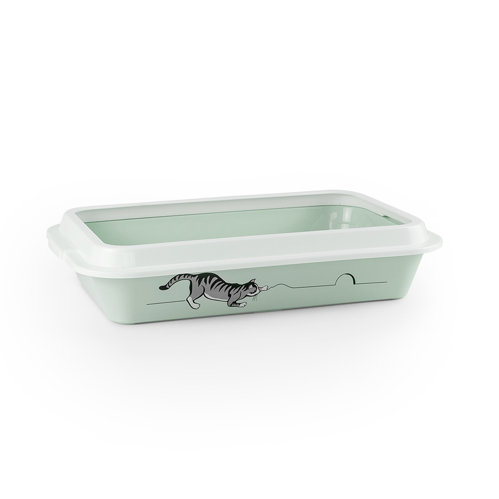 Благодаря высокому борту, наполнитель не разбрасывается по комнате, а остаётся в лотке. Бортик надежно крепится к лотку и легко убирается при необходимости.