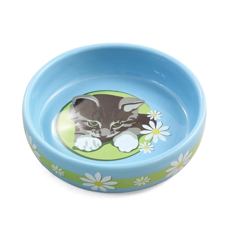 Стильная и функциональная миска для кошек выполнена из высококачественной керамики оригинальной расцветки. Такая миска идеально подойдет как для воды, так и для корма любой консистенции. Она комфортна для питомца и легко моется под струей проточной воды с использованием моющих бытовых средств. А оригинальный дизайн с изображением котенка позволит ей стать украшением любого интерьера.