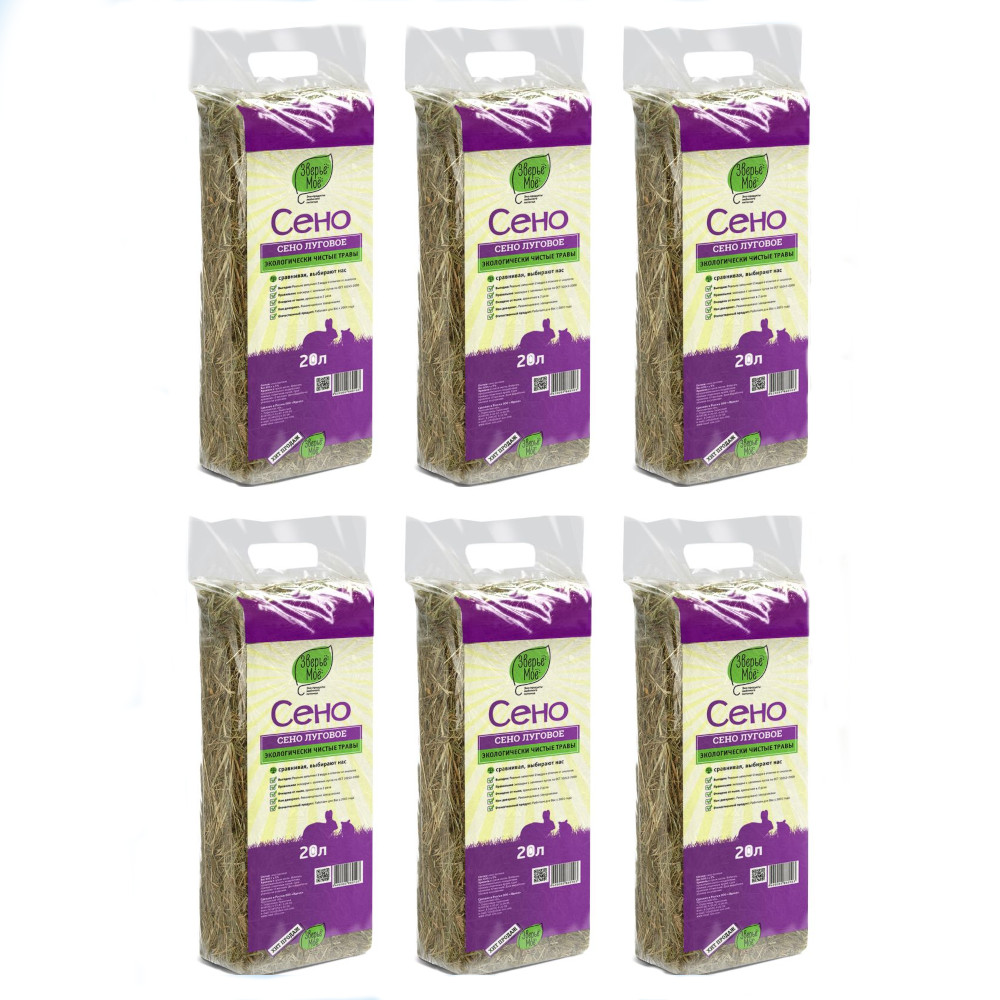 Наполнитель "Зверье мое" Сено Луговое, 20 л (6 штук).