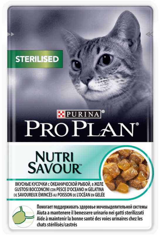 Purina Pro Plan Sterilised Nutri Savour - Корм консервированный полнорационный для взрослых стерилизованных кошек и кастрированных котов, с океанической рыбой в желе.