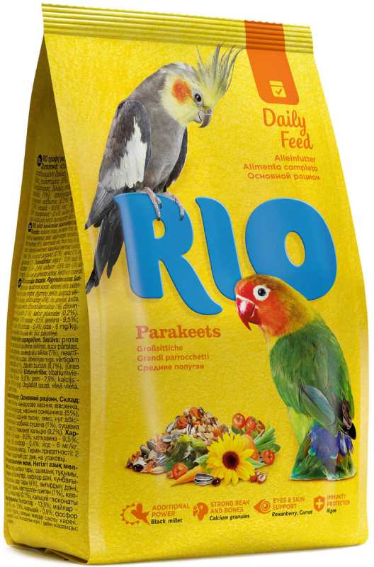 Суточная доза корма RIO для среднего попугая составляет 20-30 г.