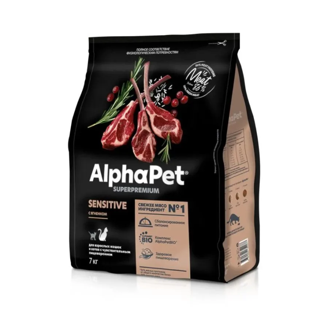 Сухой корм ALPHAPET Superpremium для взрослых кошек и котов с чувствительным пищеварением с ягненком - 7 кг (арт. 83907)
