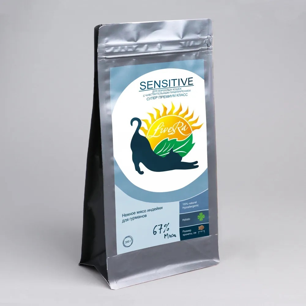 LiveRA Sensitive сухой корм для взрослых кошек с чувствительным пищеварением, индейка с рисом - 0,35 кг (арт. 07537)