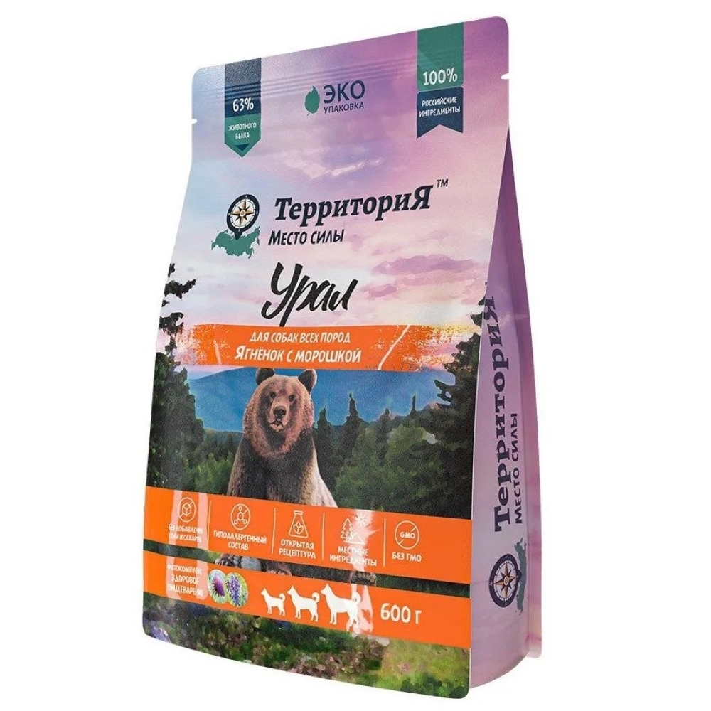 Сухой корм ТЕРРИТОРИЯ "Урал" для взрослых собак всех пород, ягненок с морошкой - 0,6 кг (арт. 5138П)