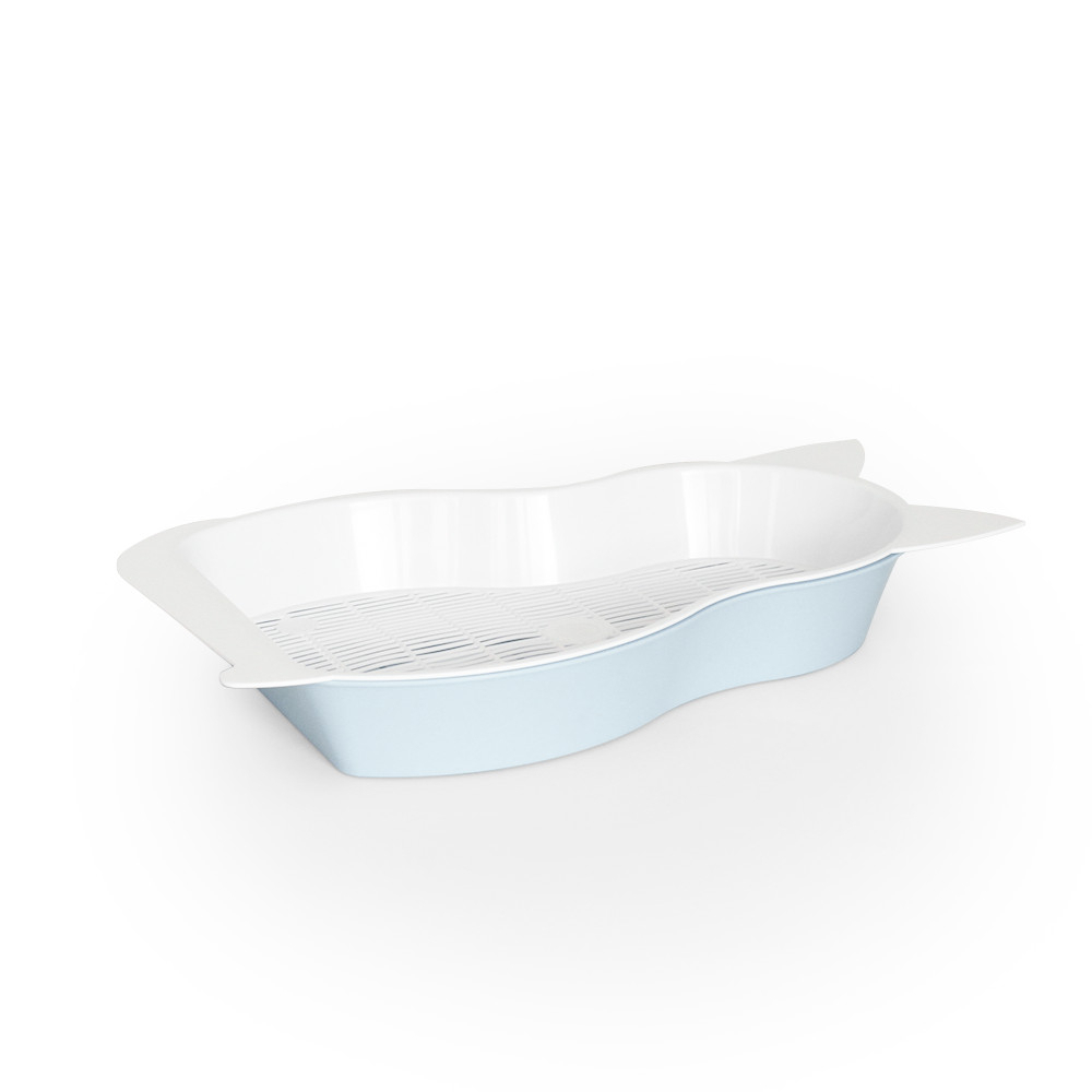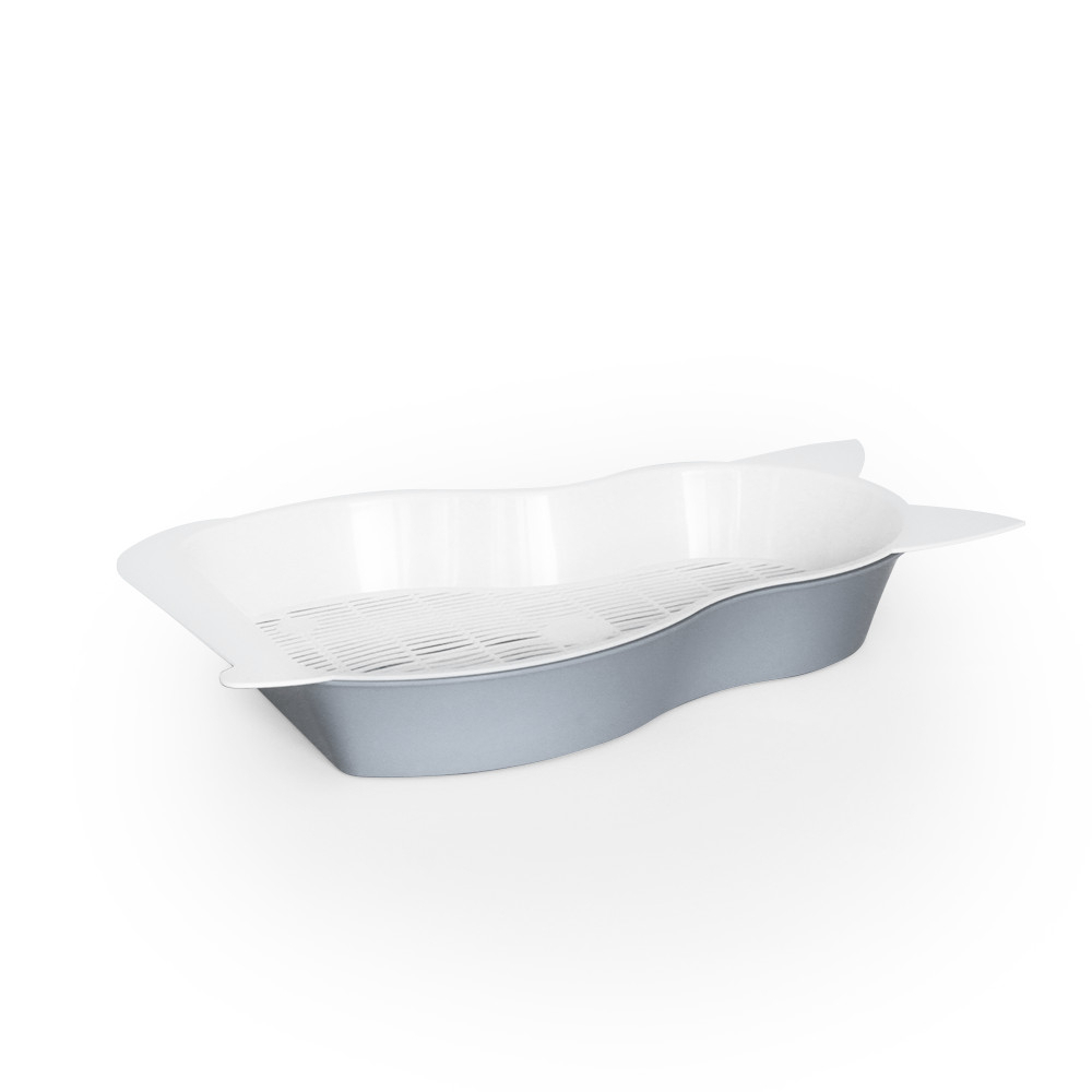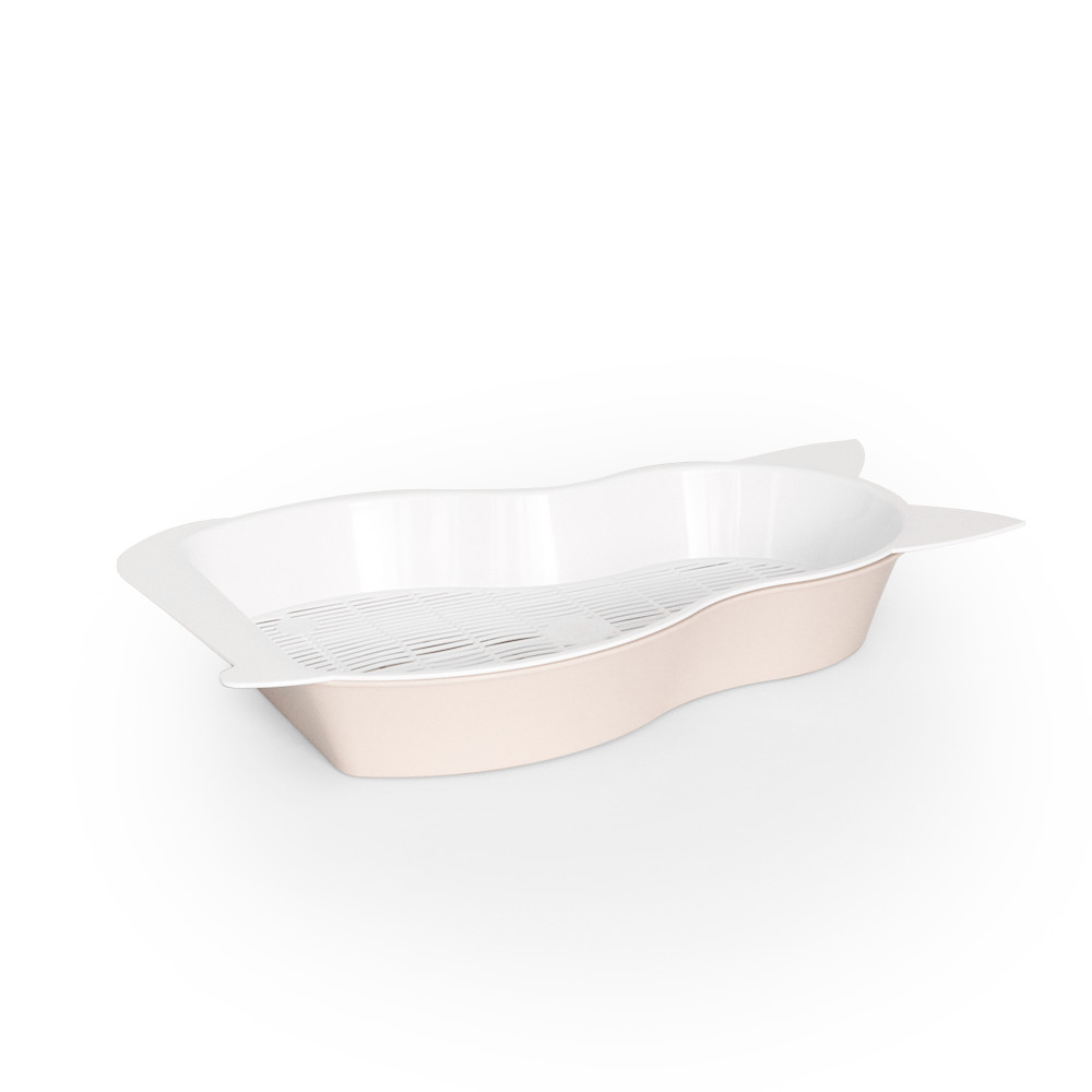 - Лоток с сеткой помогает питомцу не раскидывать наполнитель вокруг туалета, так как наполнитель находится внутри, под решеткой.