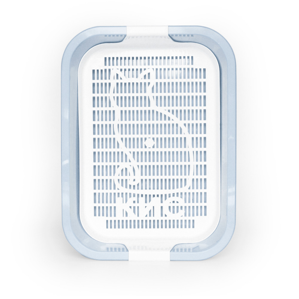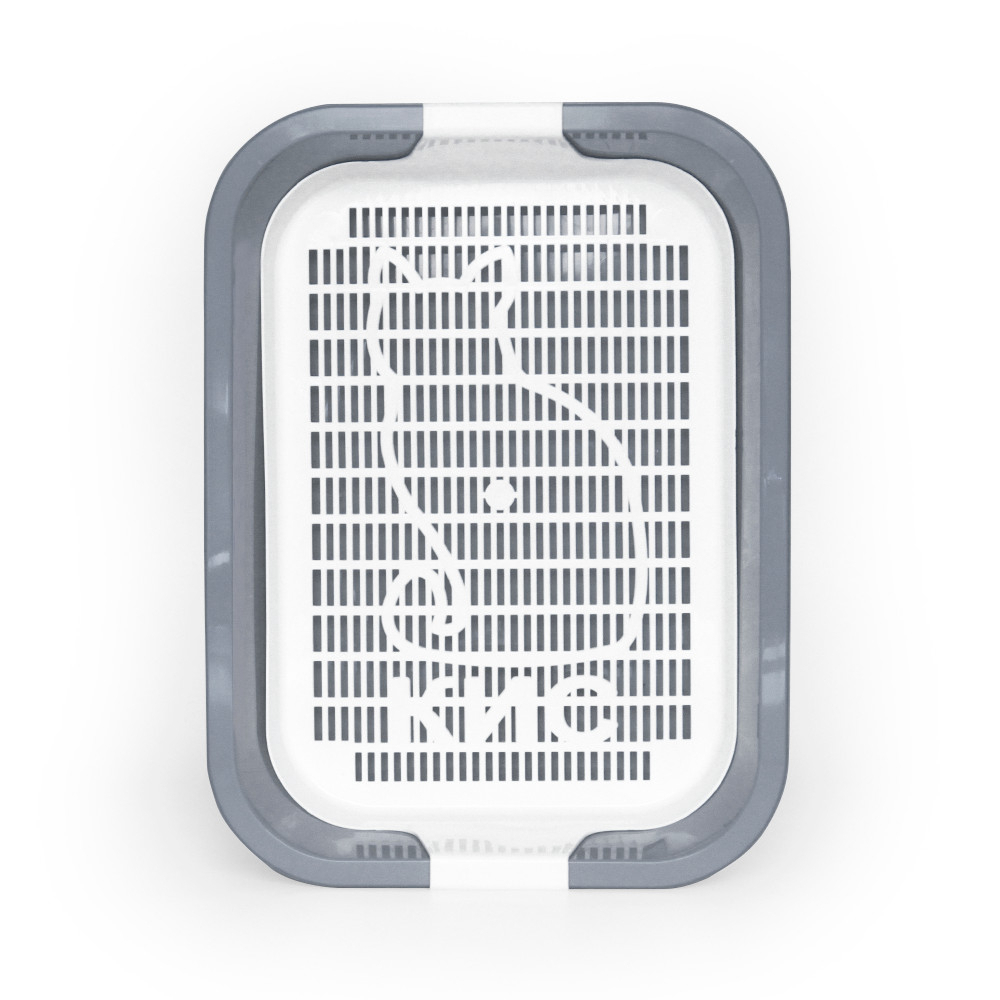 - Лоток с сеткой помогает питомцу не раскидывать наполнитель вокруг туалета, так как наполнитель находится внутри, под решеткой.