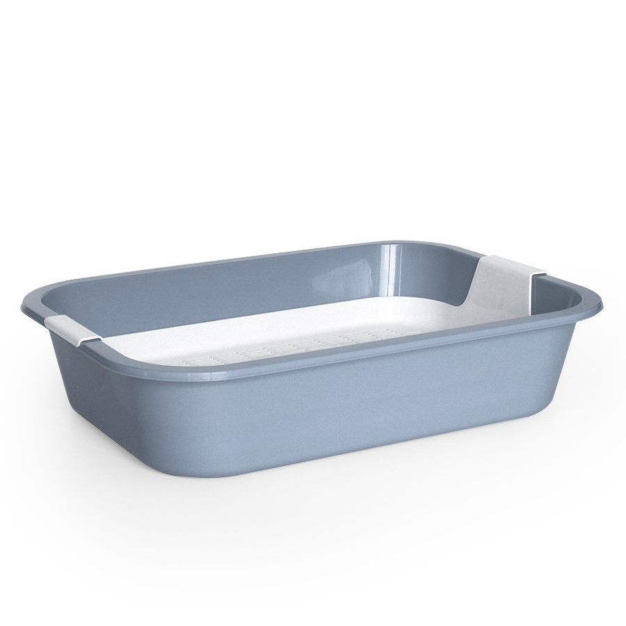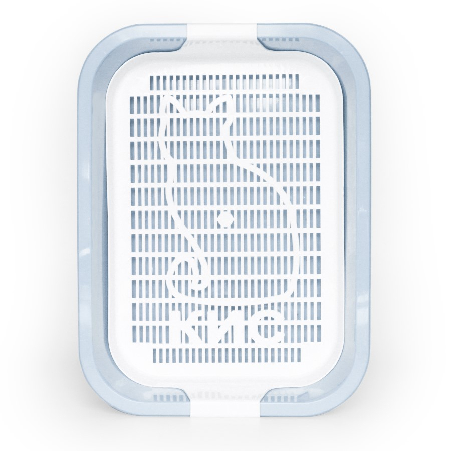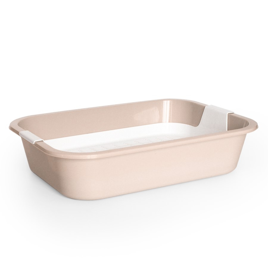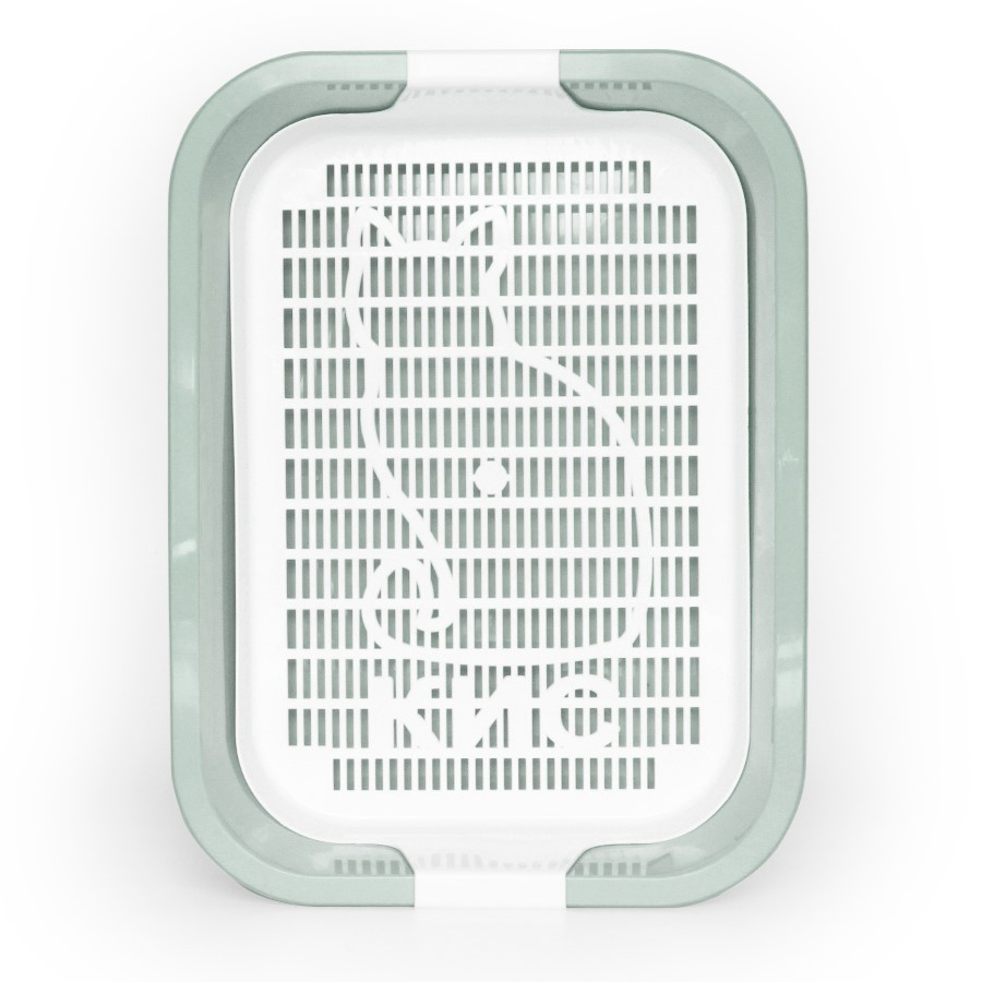 Лоток открытого типа со съемной сеткой. Наличие сетки позволяет использовать лоток как с наполнителем, так и без него. Наполнитель удобно засыпать под сетку, таким образом, лапы у животного будут оставаться чистыми.