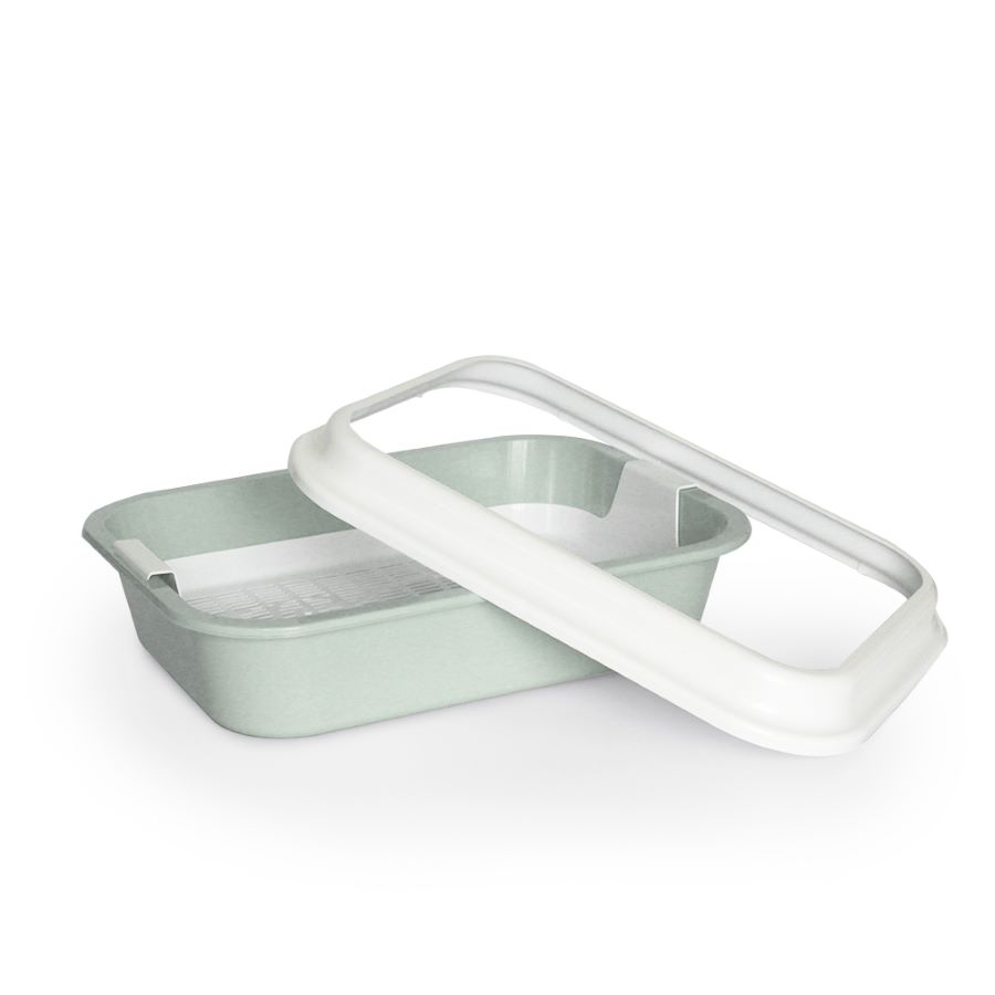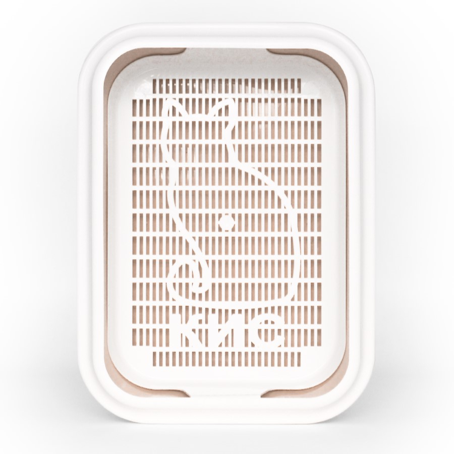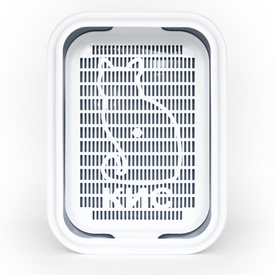 Благодаря высокому борту, наполнитель не разбрасывается по комнате, а остаётся в лотке. Наличие сетки позволяет использовать лоток как с наполнителем, так и без него. Наполнитель удобно засыпать под сетку, таким образом, лапы у животного будут оставаться чистыми.