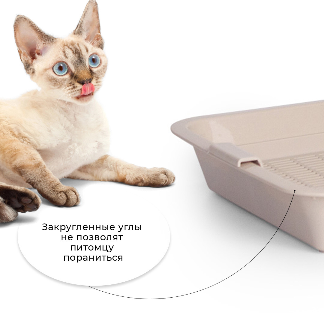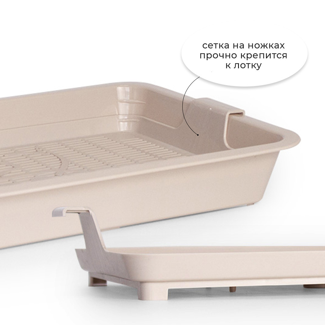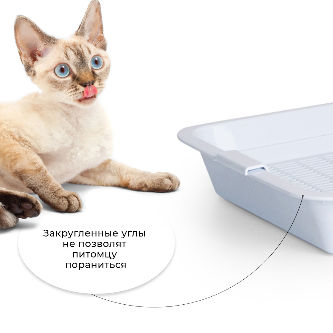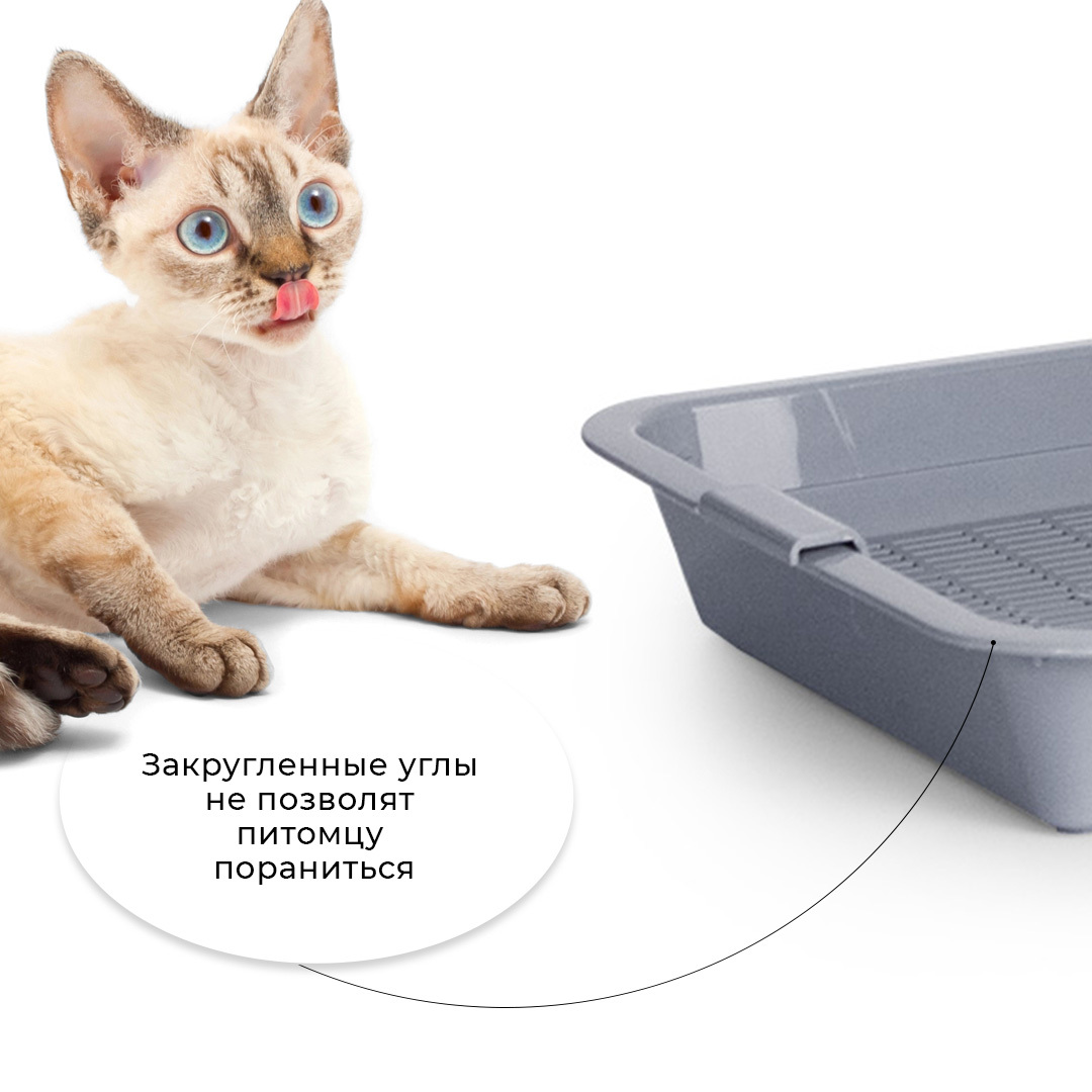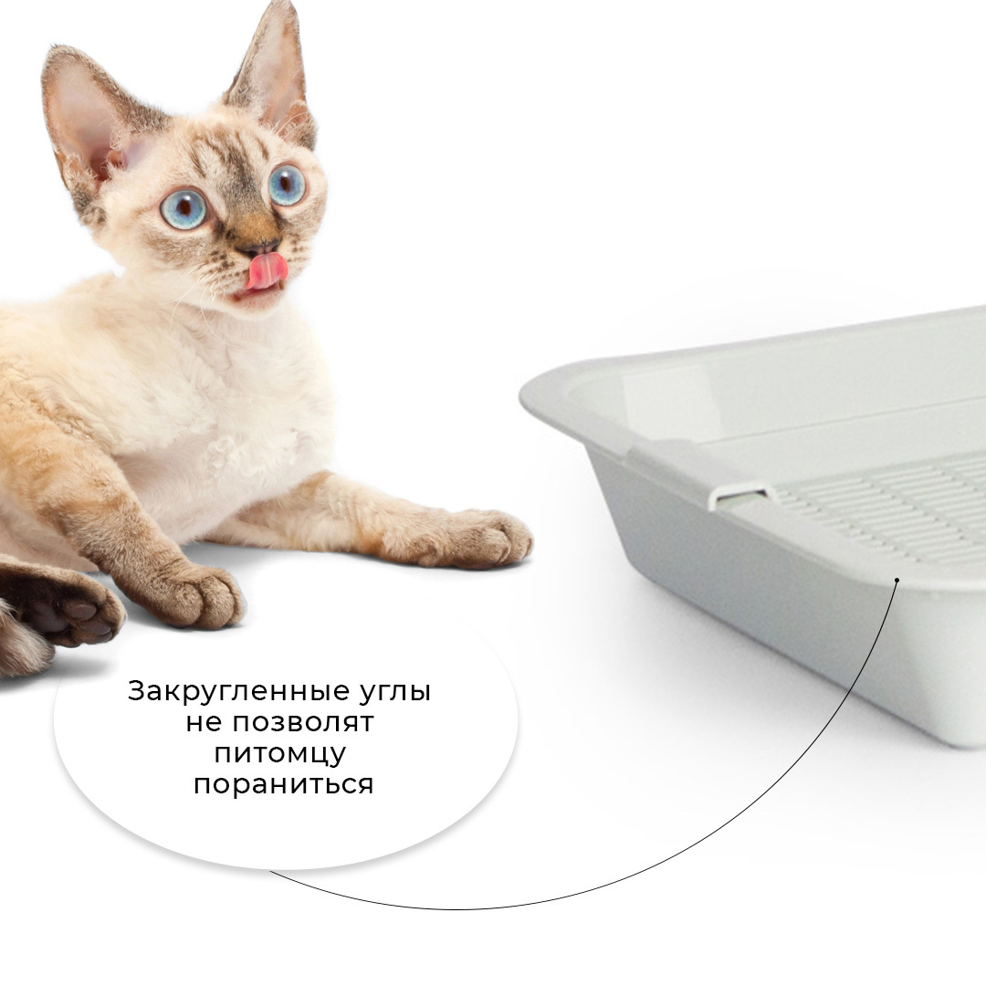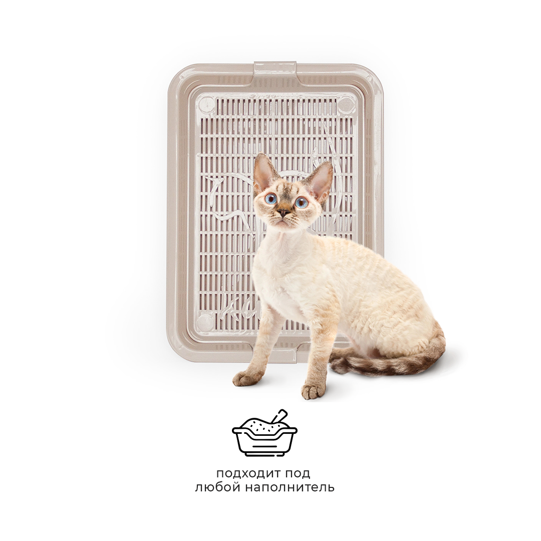 - Лоток с сеткой помогает питомцу не раскидывать наполнитель вокруг туалета, так как наполнитель находится внутри, под решеткой;