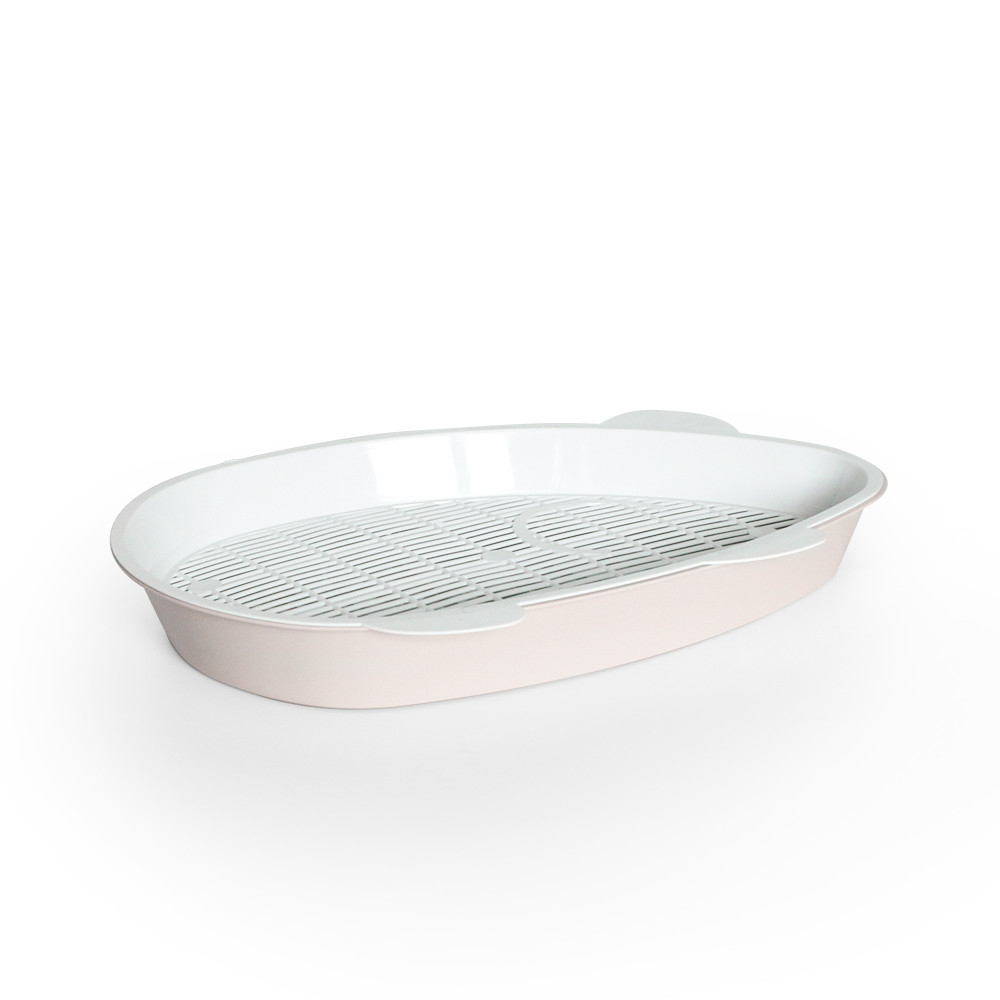 - Лоток с сеткой помогает питомцу не раскидывать наполнитель вокруг туалета, так как наполнитель находится внутри, под решеткой;