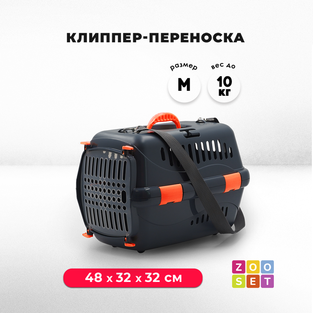 Клиппер-переноска ZOOSET с прозрачной дверцей и ремнем - М (48х32х32 см) - серый/оранжевый