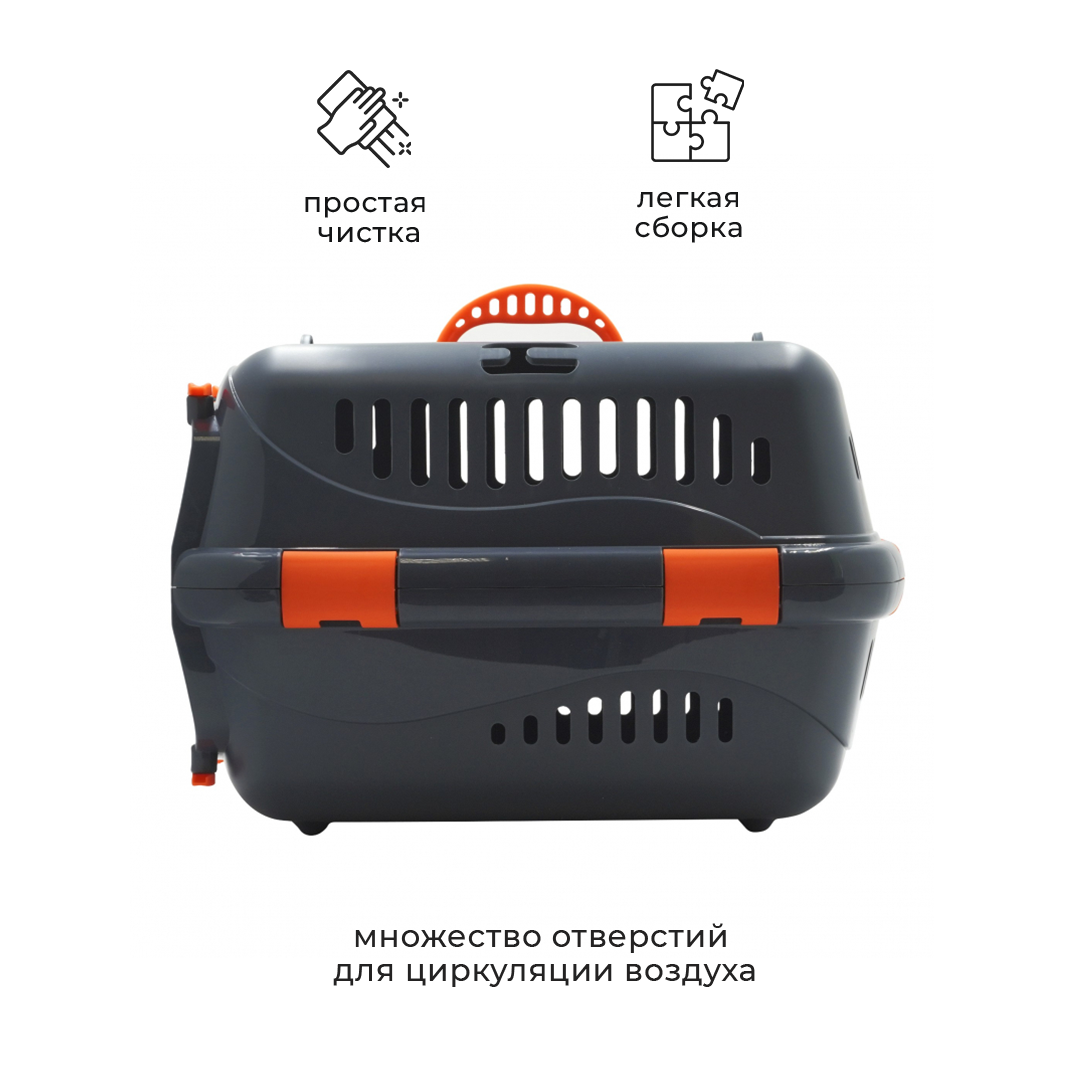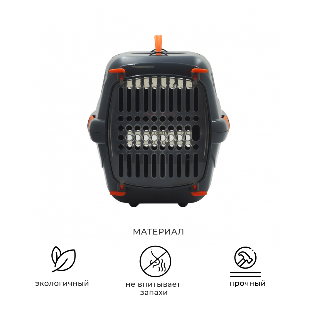 Переноска изготовлена из высокопрочного полипропилена, который не впитывает запахи и безопасен для животных и окружающей среды.
